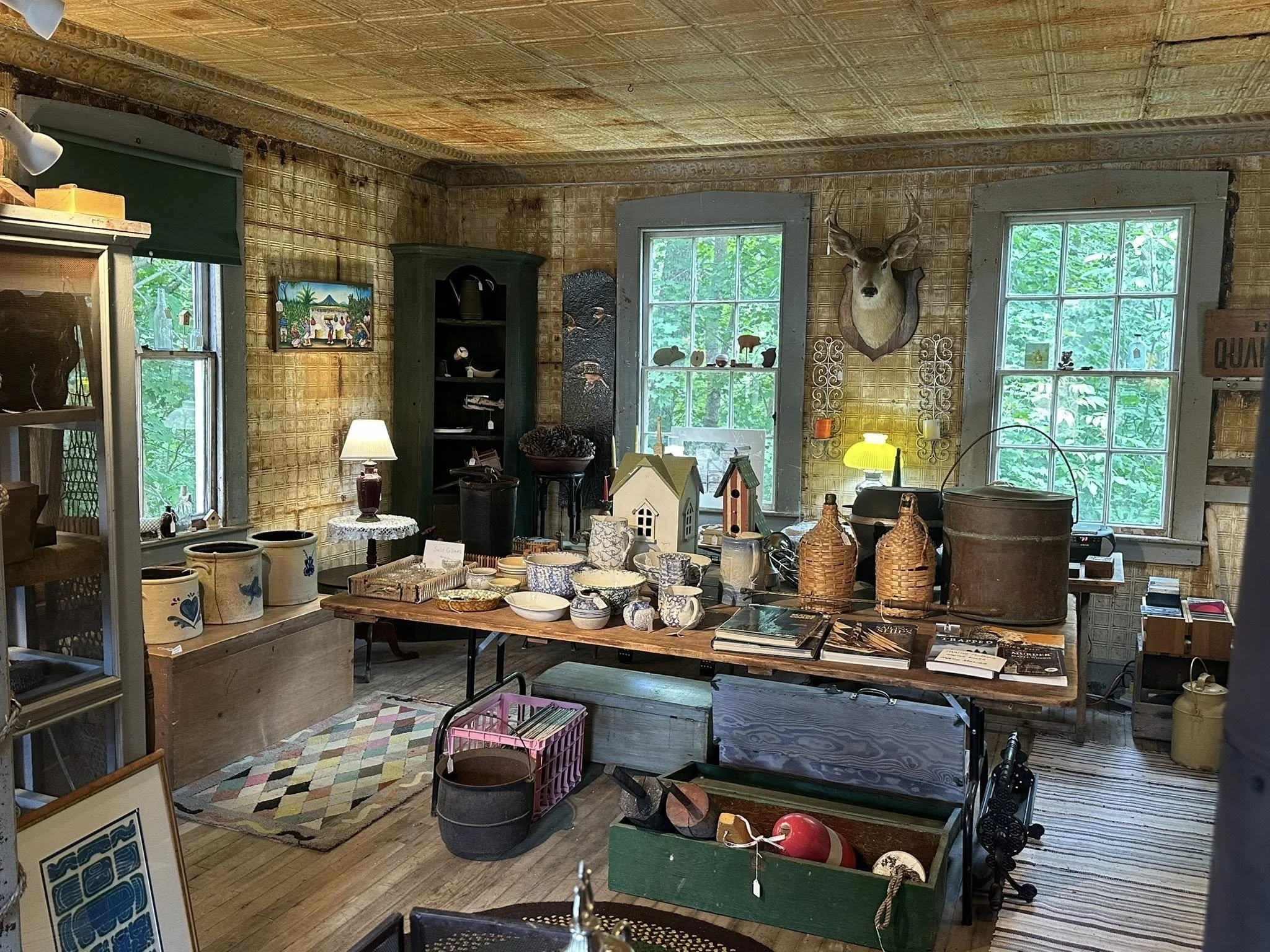 A local antique store in Sullivan, Maine, is not the same as the vintage-hipster store trend. Wooden boats, hand-carved, old maps and paintings, glass jars and dishware, shoes worn by a flapper in the 20’s, and bowls dating back to the early 1900s. Old stuff. Stories from land, sea, and home attached to every item.