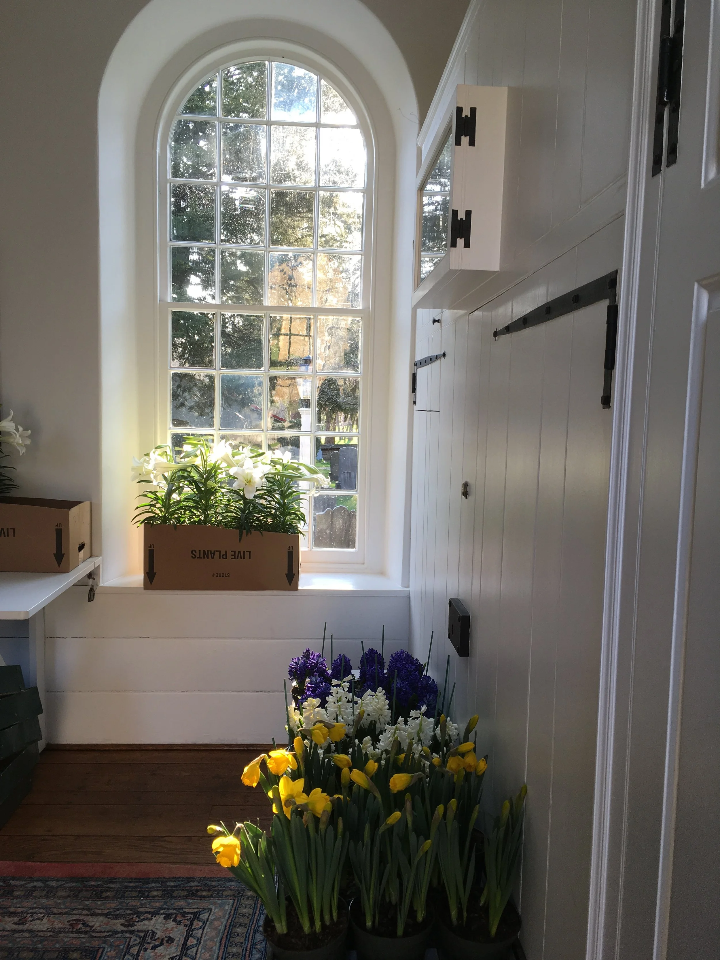 But I could smell something drifting in from the foyer off to the side of the small sanctuary. It was the smell of spring. Though I was sitting in the middle of the darkest day, the day of death and sorrow, life was waiting, ready to explode. I knew come Sunday this little space would be filled with purple, yellow, and white…I took a deep breath. Every sad thing, every evil, every loss, every misuse of power, every injustice…Sunday will come.